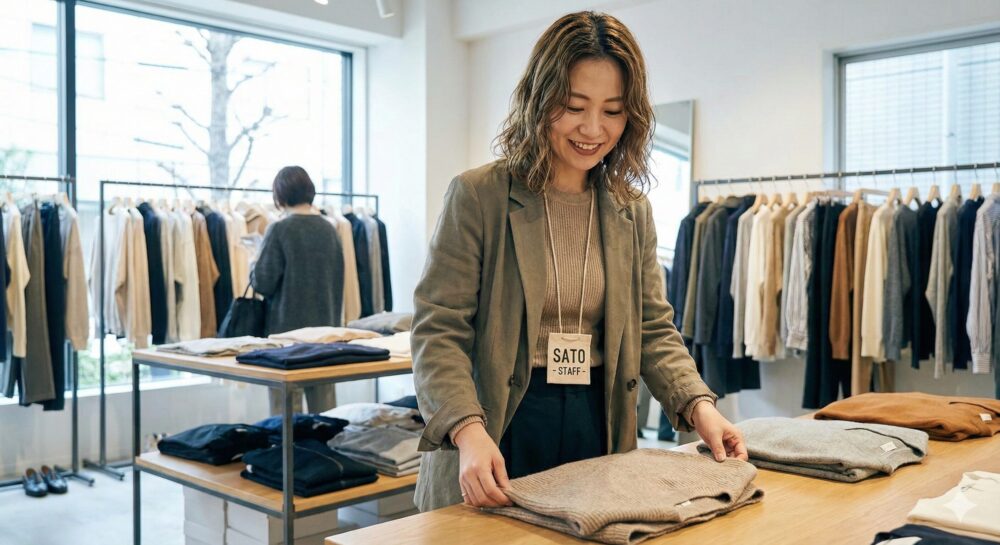 入社2週間でサービスやパーソナルカラーの研修に参加しましたが、お客様に似合うタイプを理解して、満足していただける接客がしたいと強く思いました 。研修で学んだことは、すぐに店頭で活かせる具体的な内容ばかりでした 。今後は、自店のInstagramでスタッフの骨格別スタイリングを投稿するなど、SNSでの情報発信にも応用していきたいです 。
